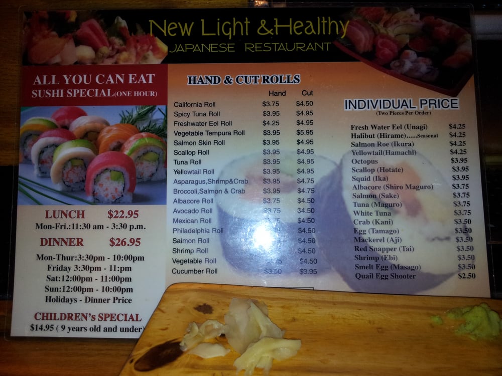The menu includes an array of sushi and hand rolls, with standout dishes like the crazy hand roll and tuna festival, which have received rave reviews from patrons. With options for vegans and a variety of fresh-squeezed juices and smoothies, there's something for everyone. The relaxed atmosphere is perfect for family outings, as it's kid-friendly and has outdoor seating. Offering convenient services like takeout and delivery, New Light & Healthy Sushi Bar ensures you can enjoy your meal whenever you choose.